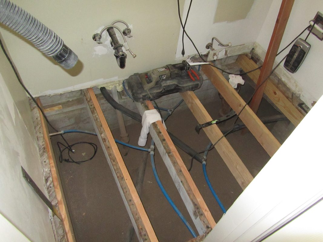 I hired out the plumbing. First, I don’t have a Pex expansion tool so I couldn’t do anything with the supply lines. The other thing about plumbing is that I just don’t really enjoy it. I have great respect for really skilled plumbers, I have done enough to know that it is not easy. But, it’s dirty, especially when doing remodeling. The gunk, crud and crap (literally) that builds up in drain pipes is nasty. So for this project I opted to bring in some help. I dug the sand out around the pipes to save us a few bucks, but the pros did the new drain pipes and supply lines.
