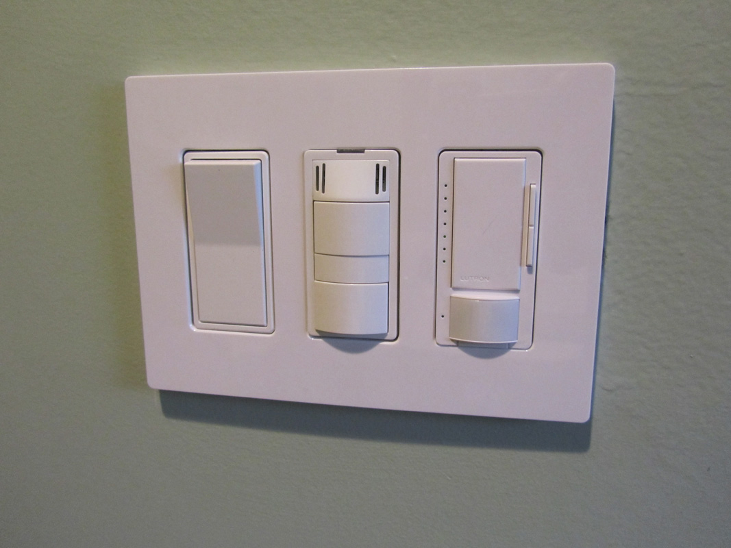 The middle switch is the fan. One button for the fan, one for the light. The slots in the top are for the built-in humidistat that turns the fan on automatically when the switch senses a rise in humidity.