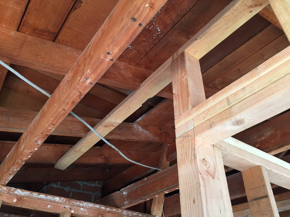 A lot going on today! Yesterday, I set the shear transfer framing into the existing roof. I am waiting on the engineer to specify the hardware needs, since some of this work was designed on site. We couldn’t fully design everything before we had the demolition complete and could see what we were dealing with in the existing structure.