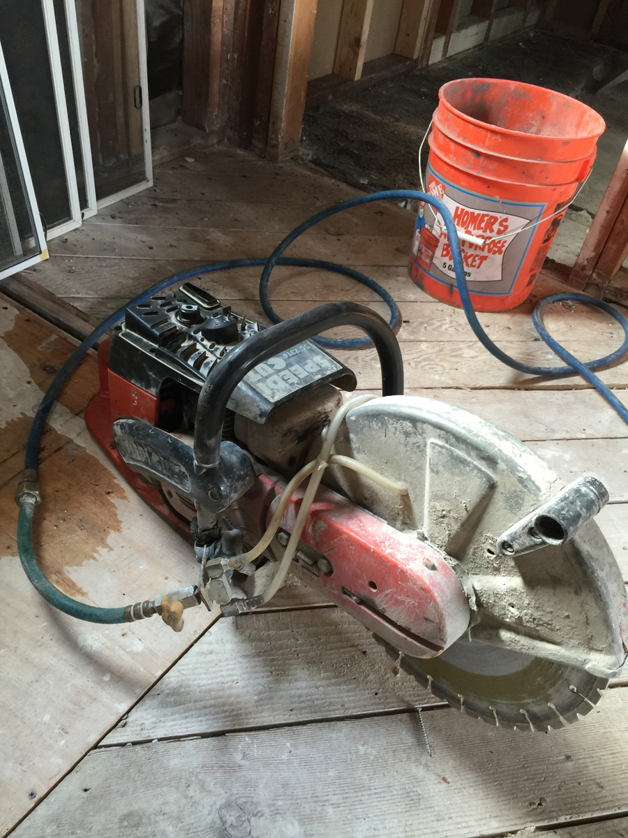 The other excitement today is the demolition of the old master closet concrete floor. I hired a cutting and demolition company to handle this for two reasons: 1. Concrete demo sucks rocks. 2. They have the special equipment needed to do this job without causing additional problems down the road.