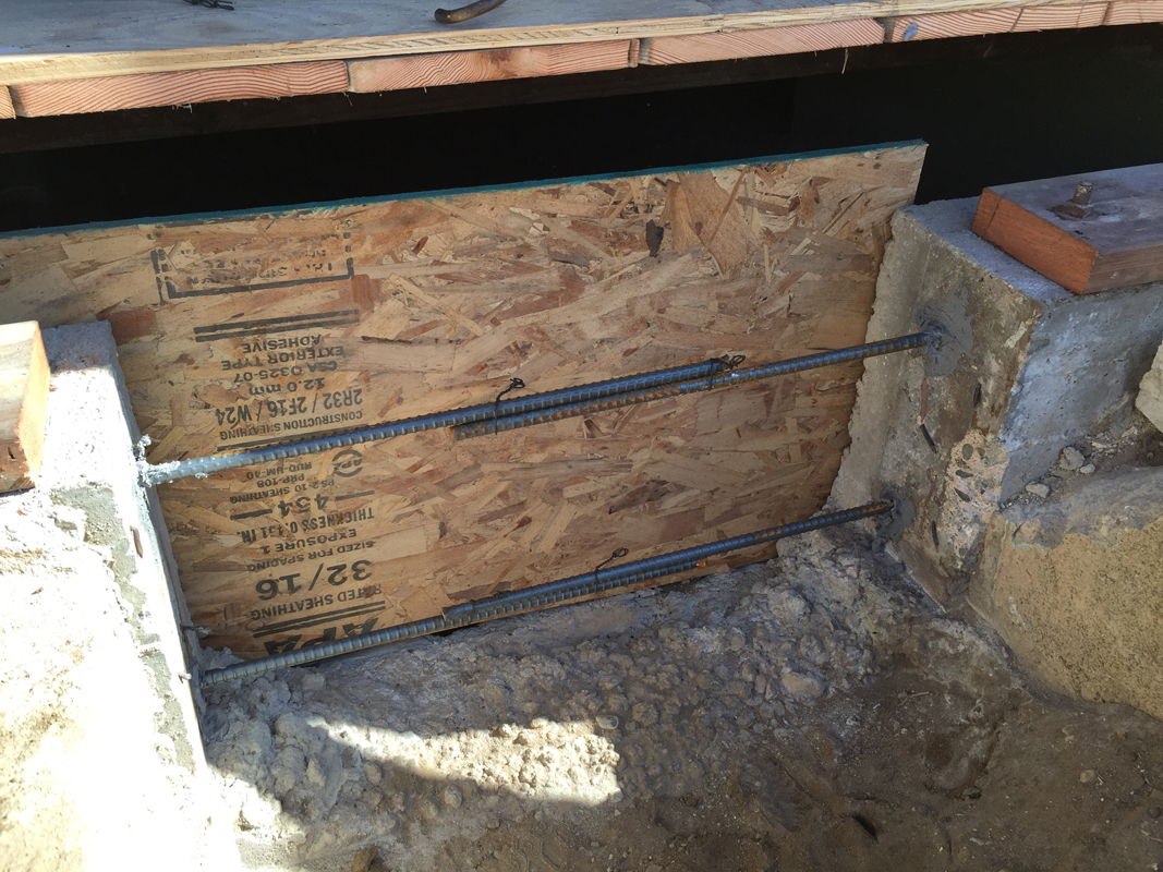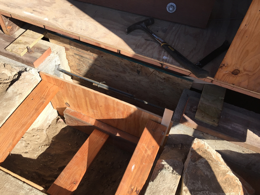 Now I could start forming everything up. I had scrap plywood laying around from various projects and the other concrete pours, so I just used that. I epoxied in a couple lengths of #4 rebar too, just to be sure. The inspector never looked at this specifically, but these photos should suffice if he has any questions.