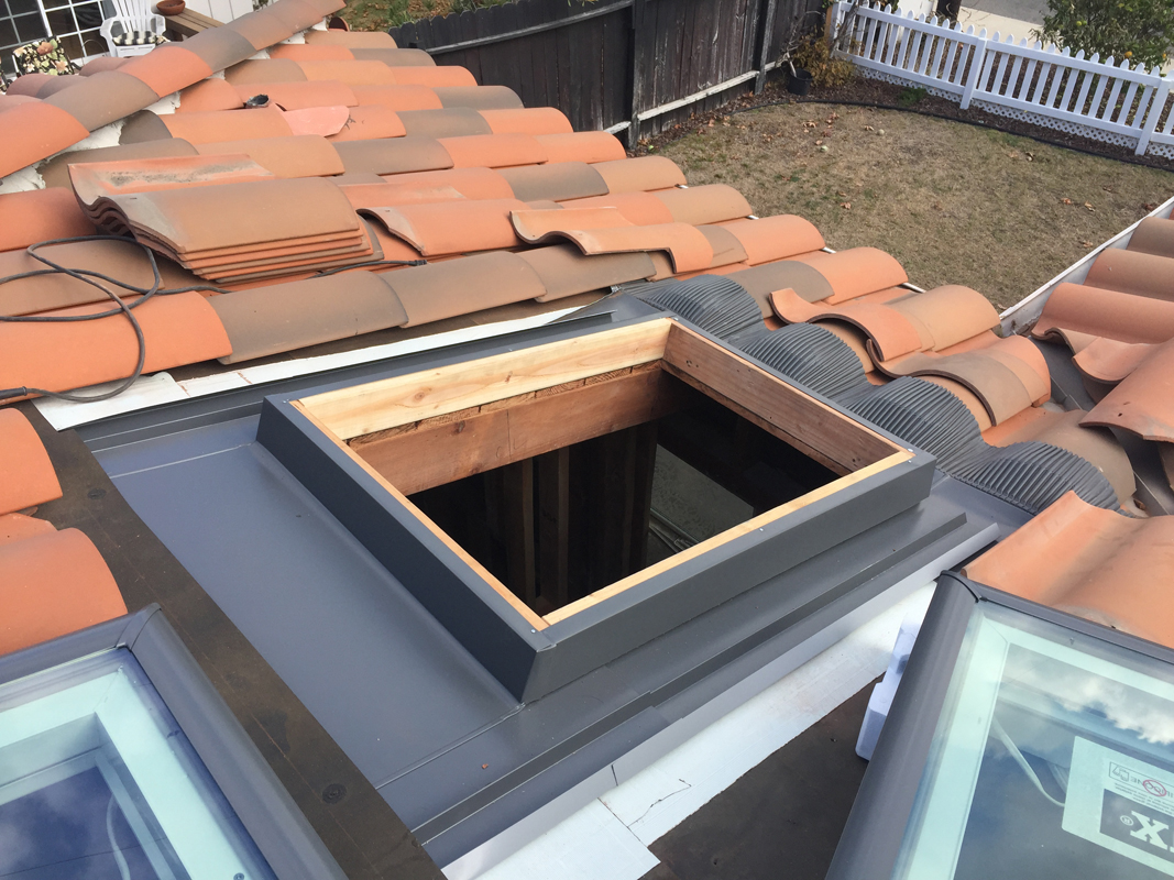 Ready for the tile to be cut around the opening and reinstalled. The skylight itself just rests on top of the opening and gets secured with two screws in each corner.